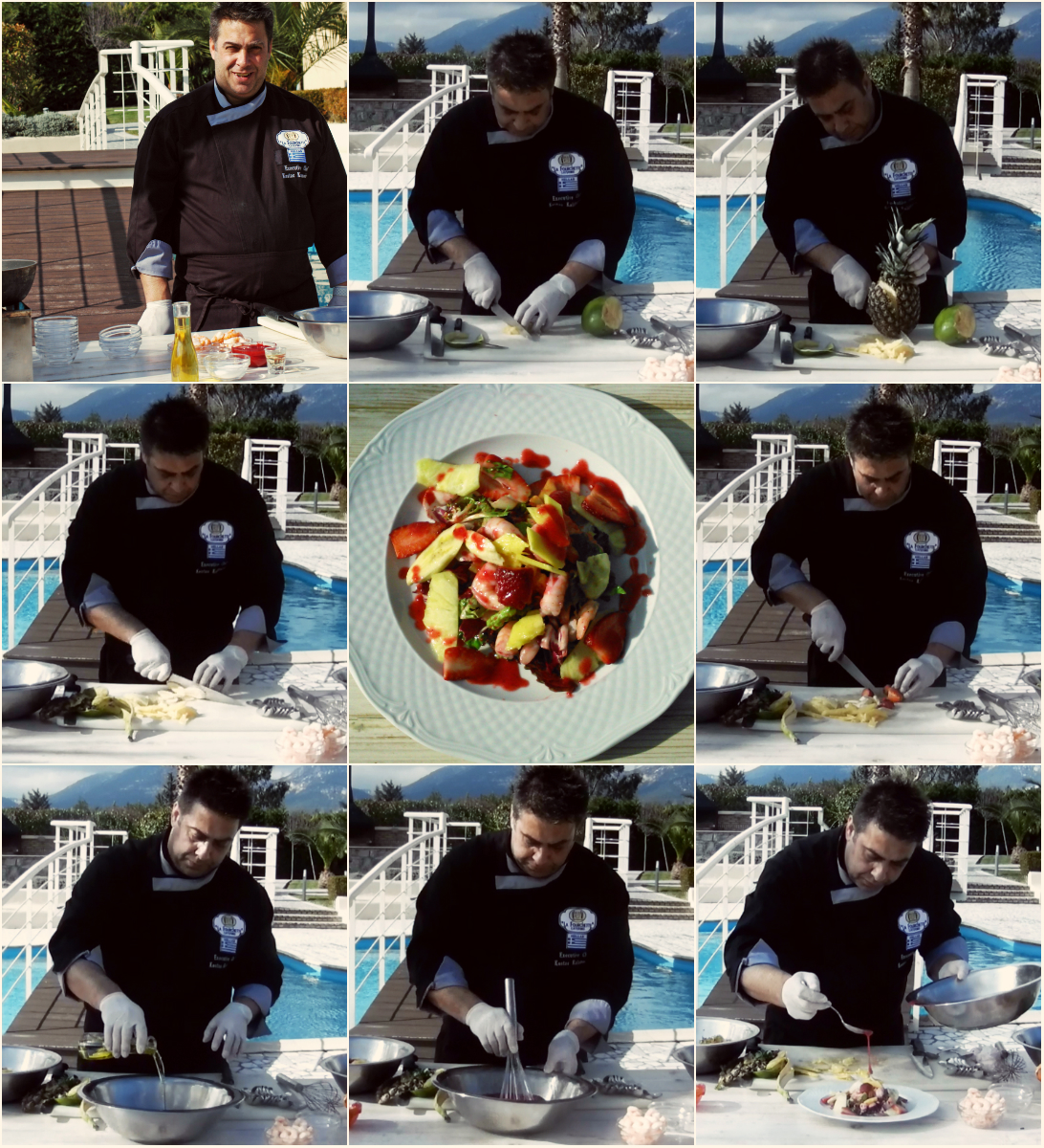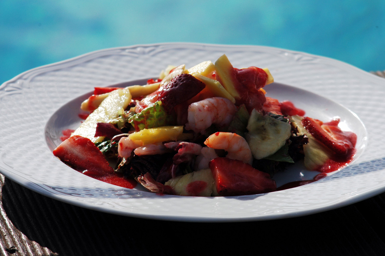 Ο Executive Chef Κώστας Καλαμούκης μοιράζεται μαζί μας ακόμη μια ιδιαίτερη συνταγή. Αυτή τη φορά πρόκειται για μια σαλάτα με λαχανικά, τροπικά φρούτα και γαρίδες, η οποία ταιριάζει και με το ριζότο του πάθους, το οποίο μας παρουσίασε πριν μερικές μέρες, και είναι παράλληλα μια άριστη επιλογή για την ημέρα του Αγίου Βαλεντίνου.